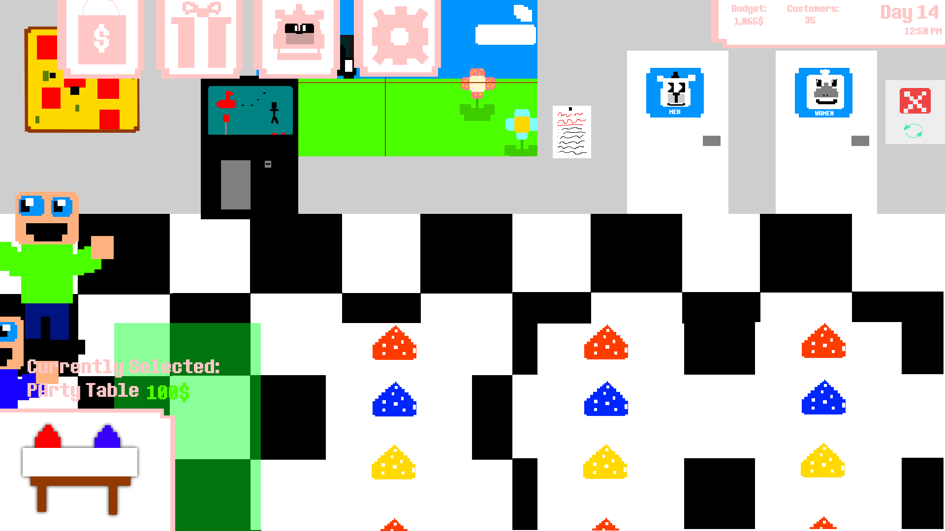 Mock-ups for a FNaF tycoon game. I think it is somewhat well known that an expanded tycoon game was in the cards before Scott ultimately made UCN. I think that was probably the right call in my opinion but a legit FNaF tycoon would be real neat.