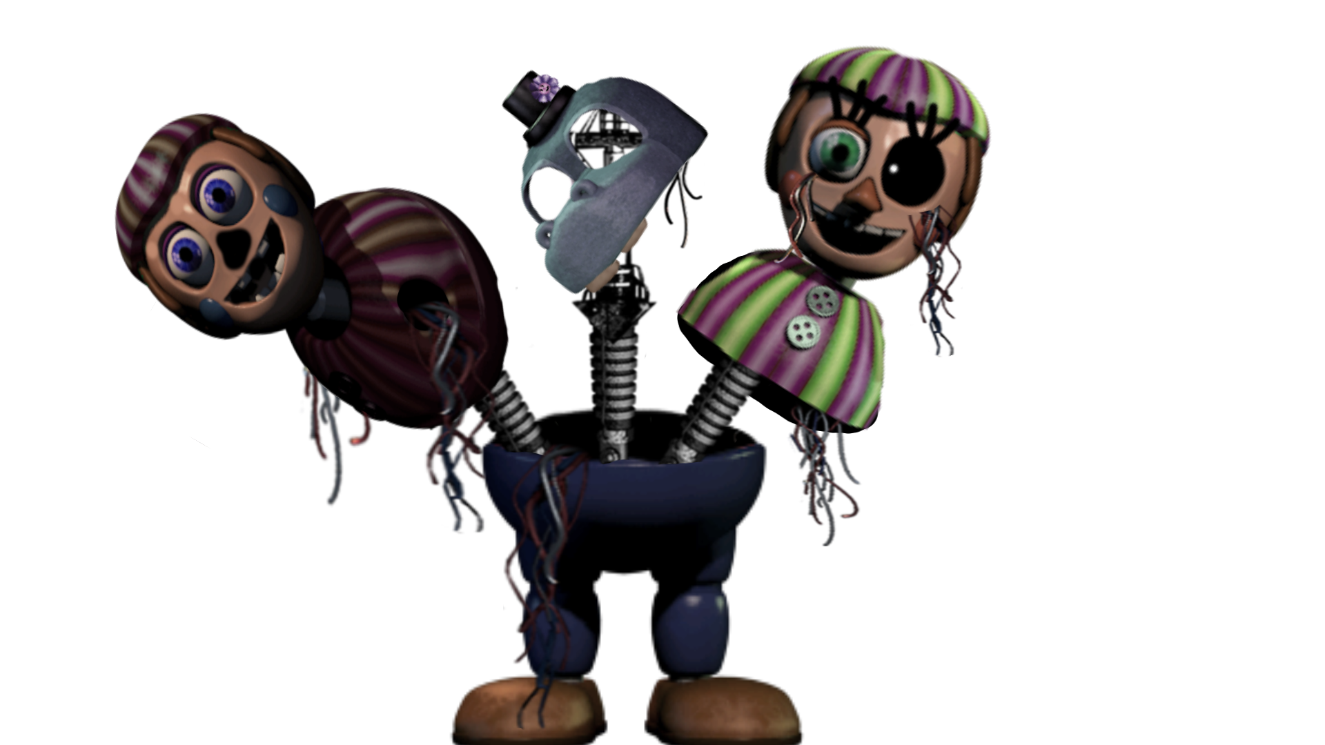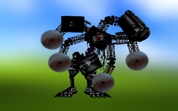 Potential animatronic for a hypothetical FNaF 7 (before the actual FNaF 7 came out, whichever game you consider it). The idea is that it was the masks from the Happiest Day minigame from FNaF 3 as animatronics. I think it was a common fan theory back then that the Mediocre Melodies were what the masks were based off of. The blue guy was based off of the blue mask that did not have an associated Mediocre Melody.