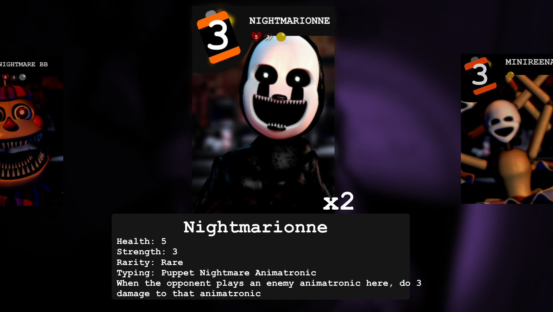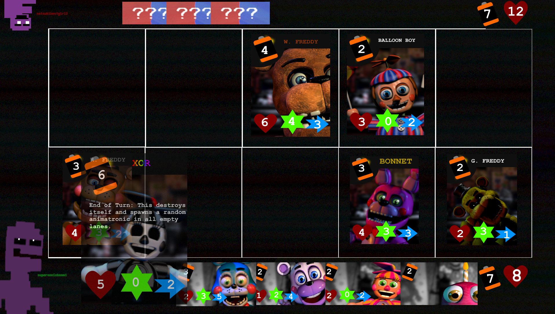 Mockup for a battle from the aforementioned FNaF card game idea