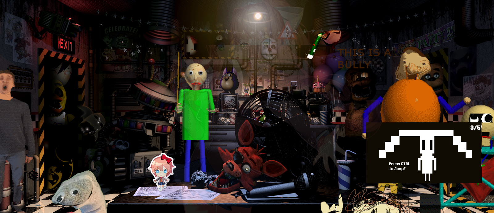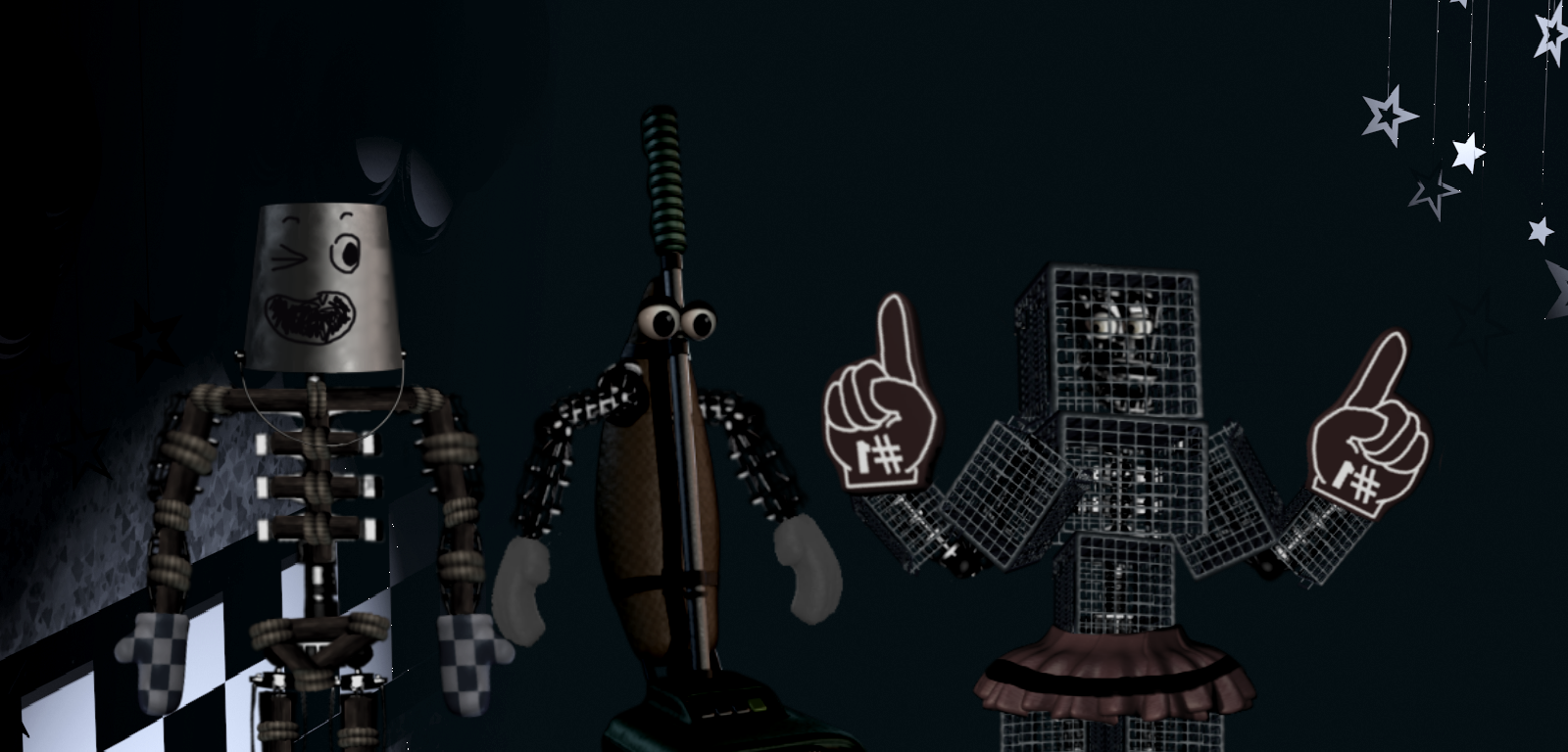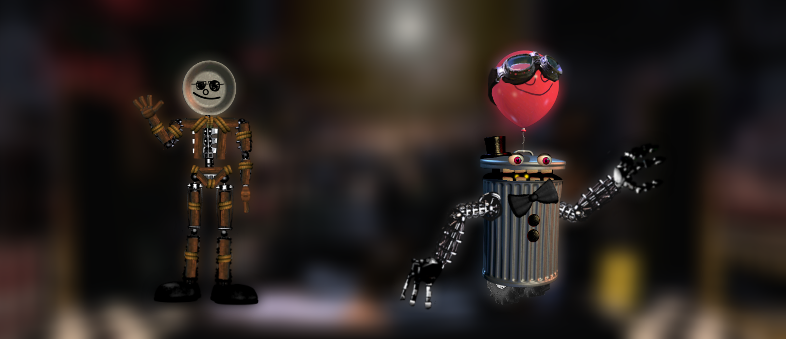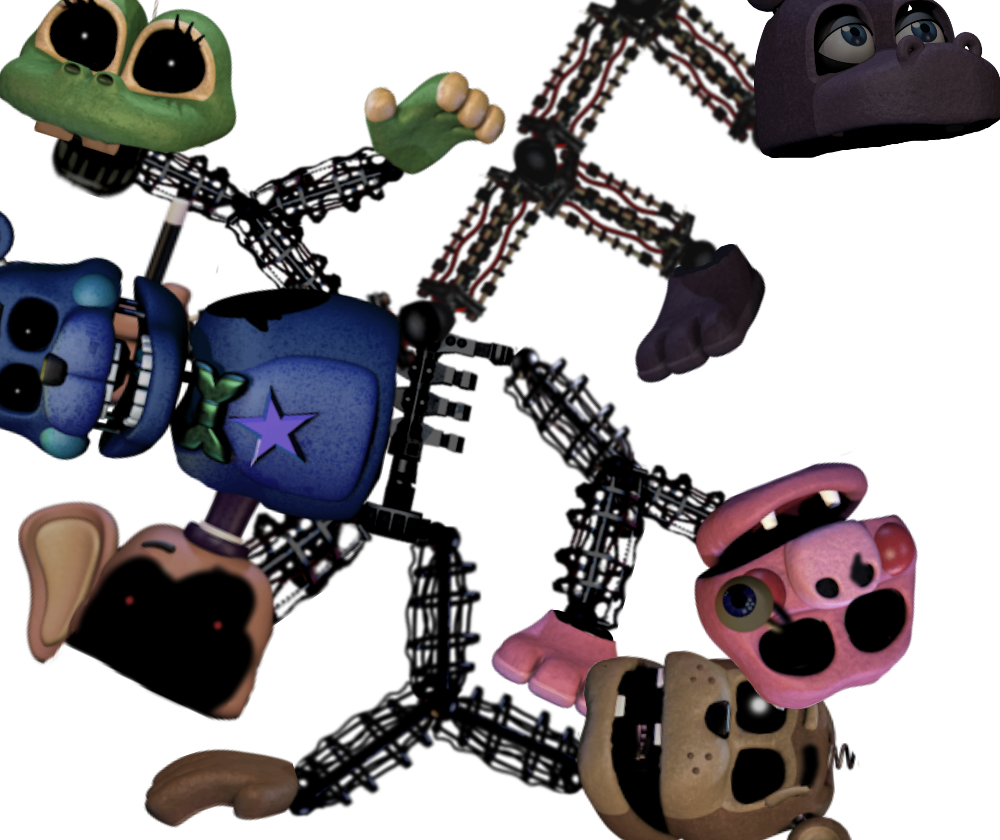 I guess edits of Trash & The Gang to resemble actual animatronics... or be actual animatronics. Again didn't really understand lighting so it looks a bit off.