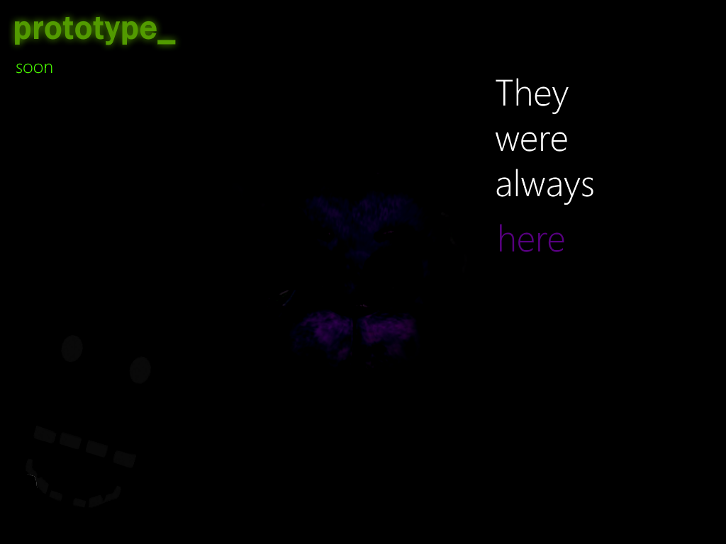The first teaser for a FNaF fangame I was developing alongside a few other people: PROTOTYPE_. Development didn't even last a full month before getting canned due to personal drama that I caused. Whoop.