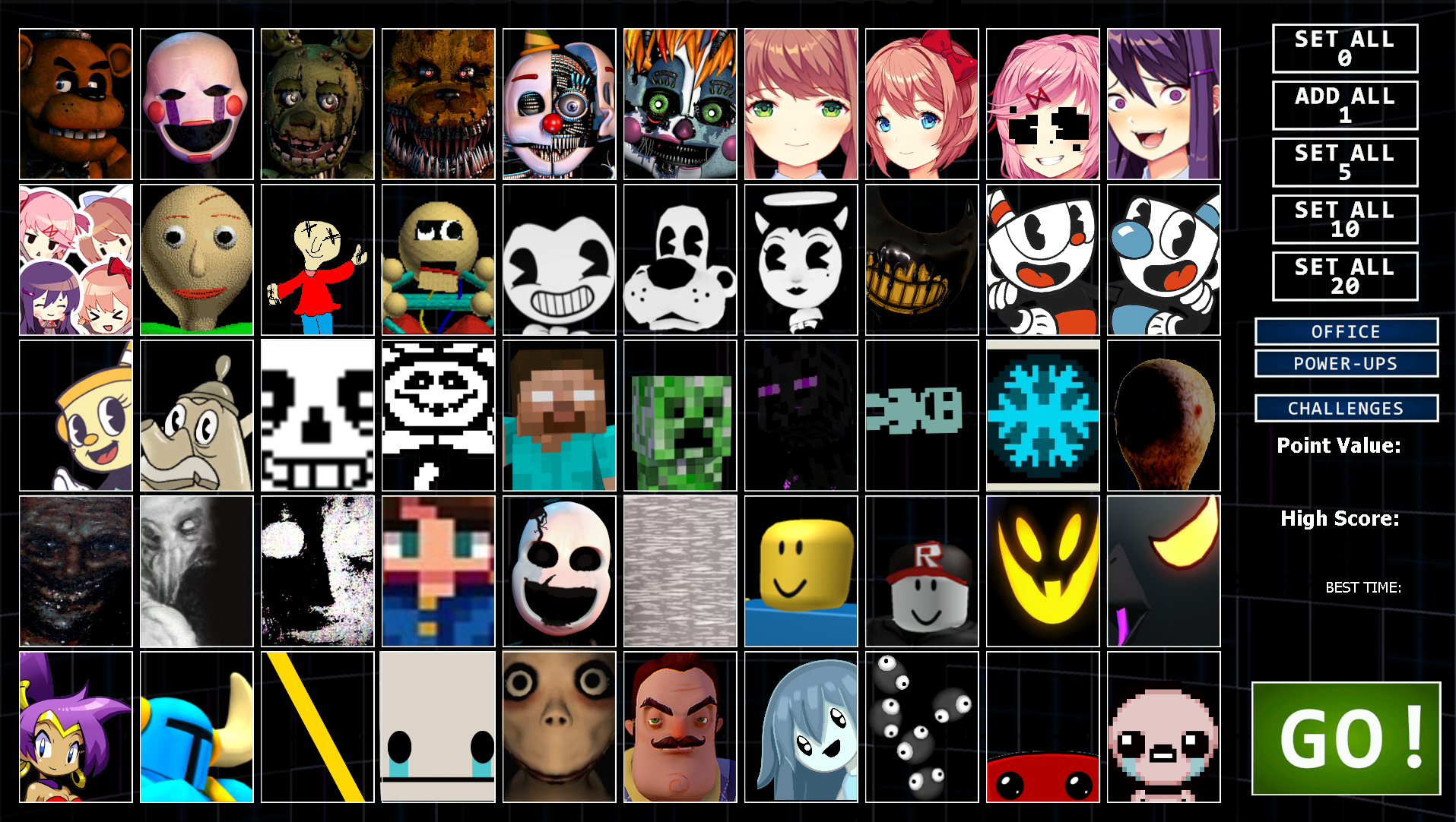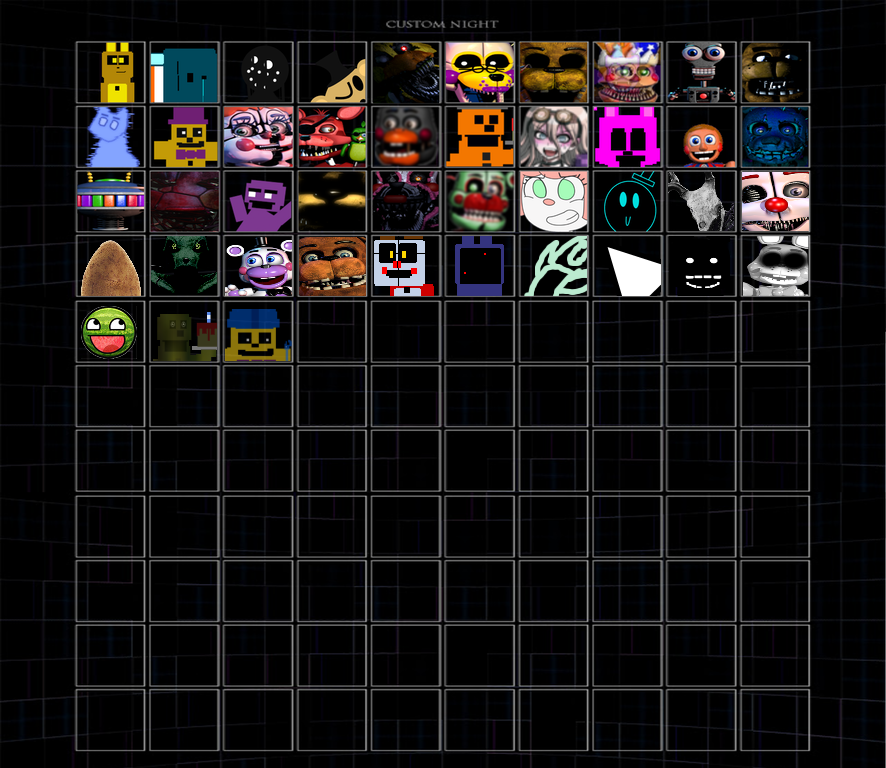 Expanded version of the Ultimate Custom Night roster in the leadup to its release. Very stretched and weird as you can tell.