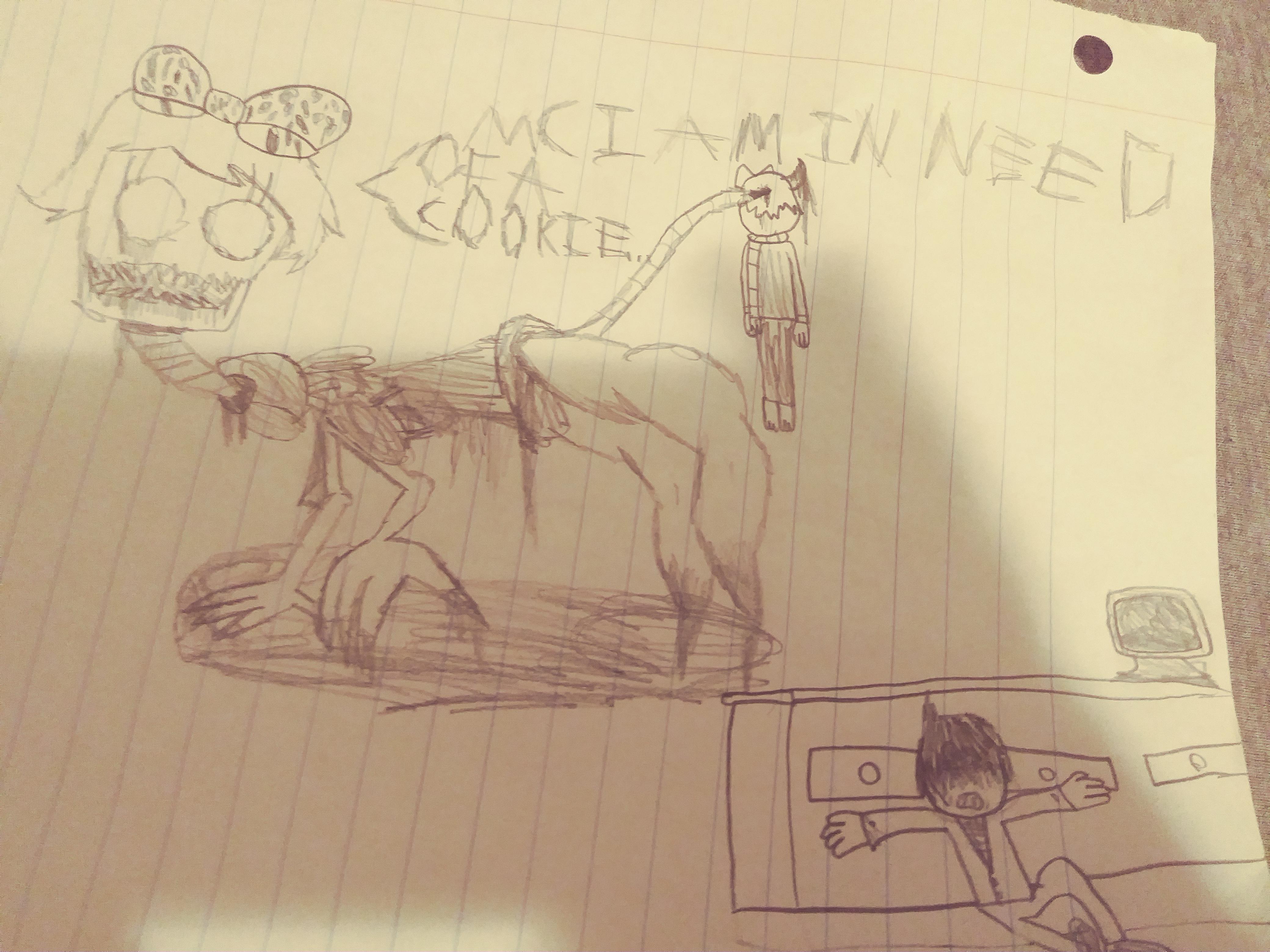 Ok so this was around the time the first Freddy Files book released. It had a little doodle of a character called Math Man and he became a really big meme on the FNaF reddit. This is a drawing of him as Papyrus if you couldn't tell.